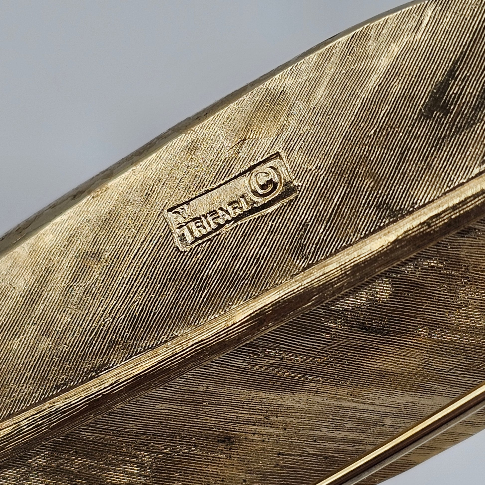 Add a touch of vintage elegance with this stunning Vintage Signed Trifari Curled Leaf Gold Tone Pin Back Brooch. Crafted with intricate details, this brooch will add a touch of sophistication to any outfit. Perfect for any occasion, this brooch will surely make a statement.