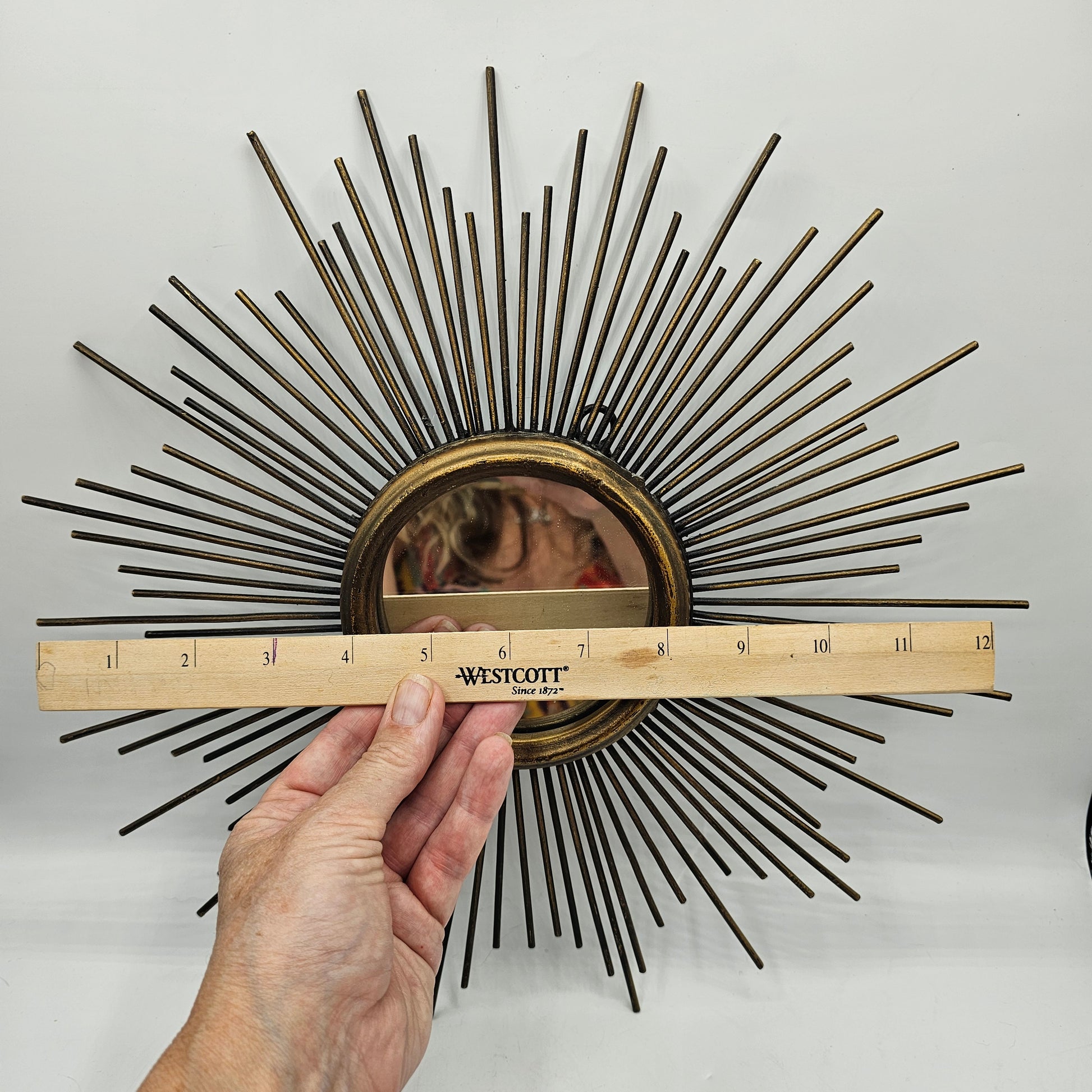Enhance your home decor with our Vintage Sunburst Wall Mirror. The metal rays add a touch of glamour and sophistication to any room. Enjoy a unique and vintage aesthetic while also adding depth and light to your space. A perfect fit for any modern or traditional interior design.