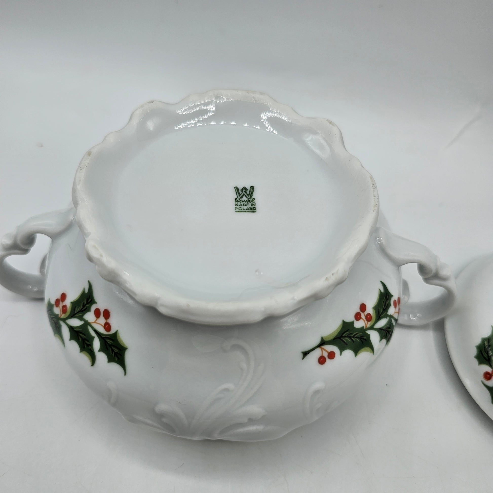 Vintage Wawel of Poland Covered Sugar Bowl with Holly Berry Design and Handles
