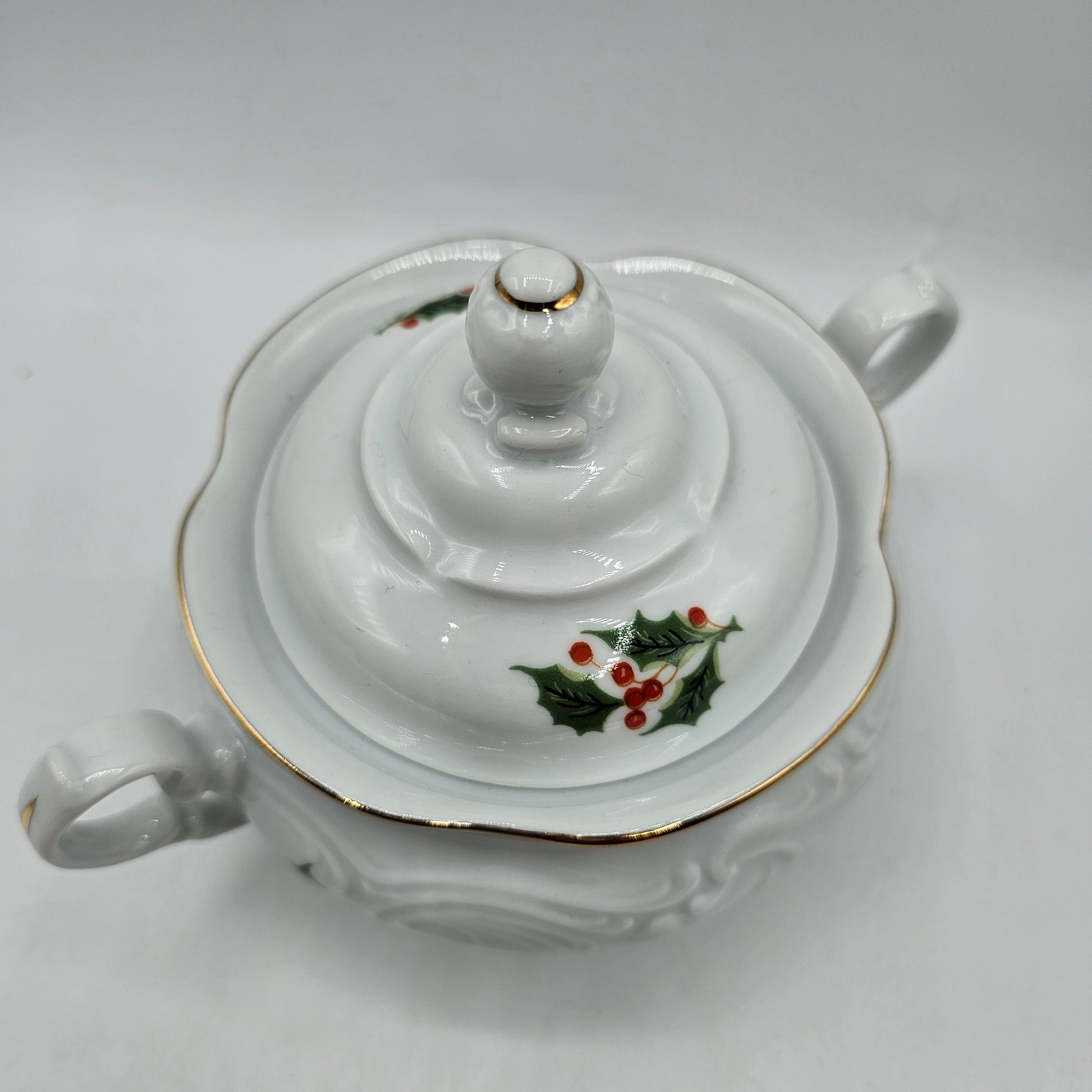 This vintage Wawel of Poland sugar bowl features a classic holly berry design and convenient handles. Made with expert craftsmanship, this covered sugar bowl is perfect for adding a touch of elegance to any tea party or dining experience. The durable material ensures long-lasting use and effortless clean-up.