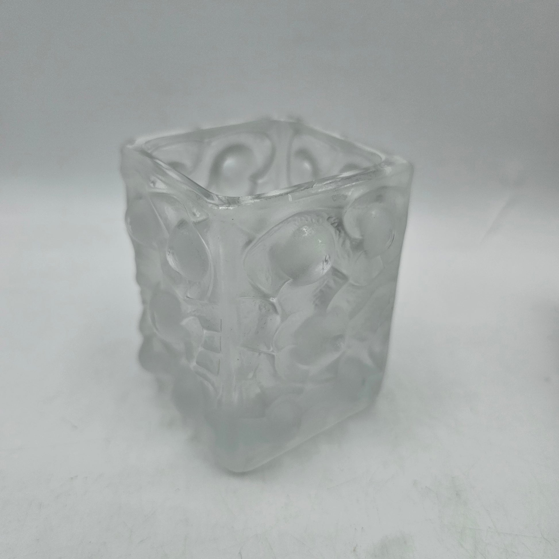Weil Crystal Czechoslovakia Frosted Glass Candle Holder / Toothpick Holder - 3" tall